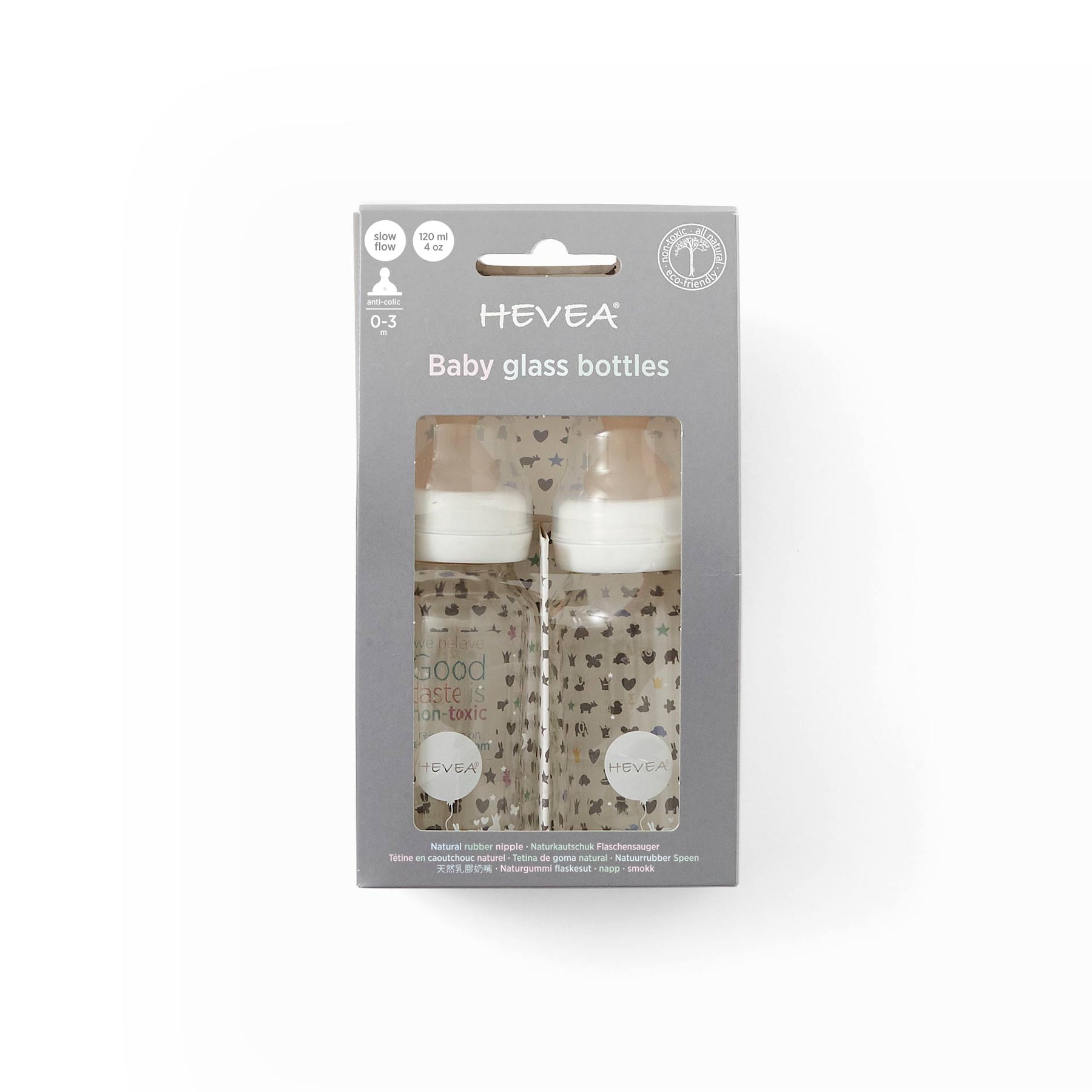 HEVEA GLASS BOTTLE 120ML (2 PACK)
